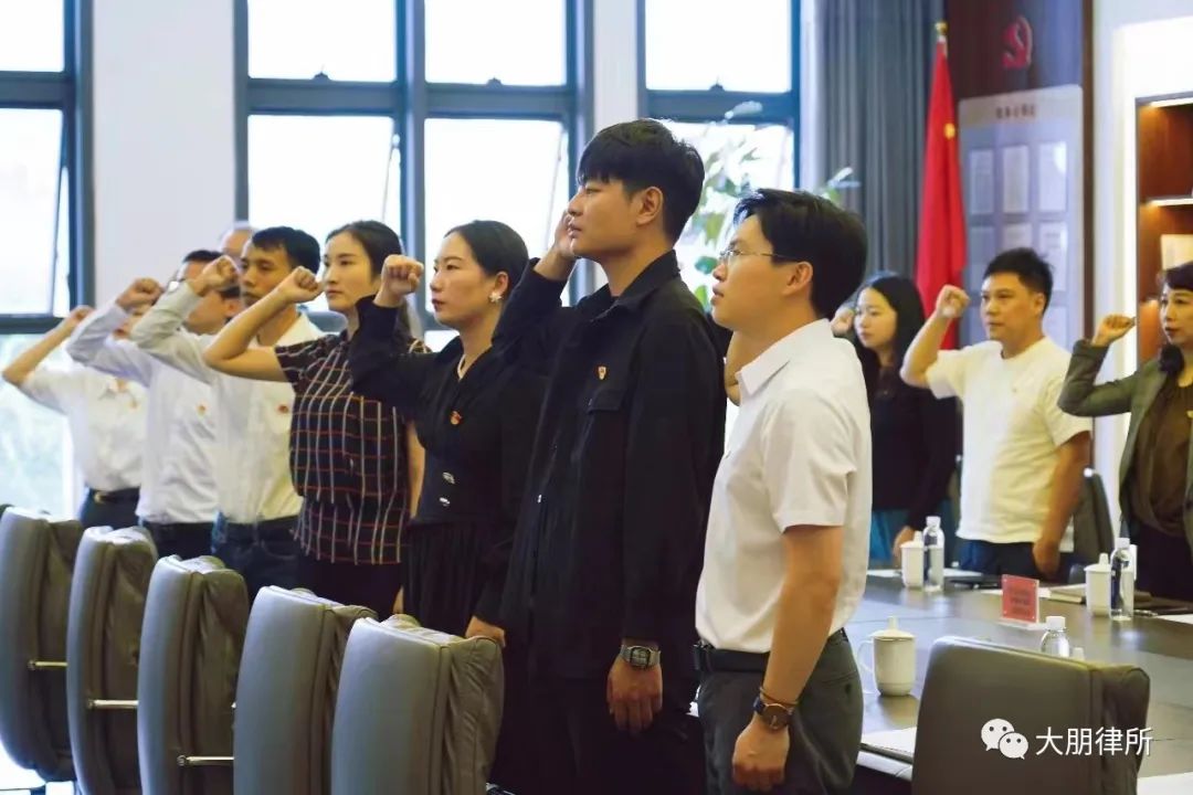 会议伊始,在云南南博律师事务所党支部书记吴翔的带领下,现场党员高举右拳,共同重温了入党誓词,铿锵有力、掷地有声的誓言时刻提醒着每位党员律师要坚定信念,不忘初心,践行使命。